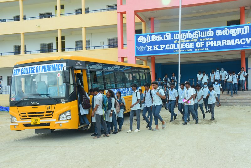 RKP College of Pharmacy has full-fledged paid transport facility for students covering all parts of Krishnagiri for Day Scholars. The varsity’s transport department is centrally managed and has well-defined routes touching all major pick-up points including bus stations. The charges vary from distance to distance. All the buses are comfortable considering smooth travel for students. The College regularly updates the guidelines as received from the Central, State governments.